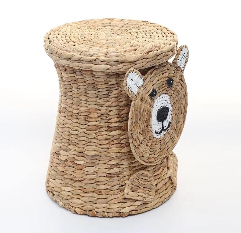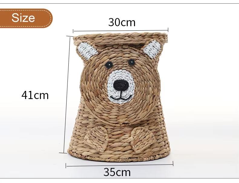 Size: D13,8 x H16 inch:Water hyacinth basket woven shape of bear