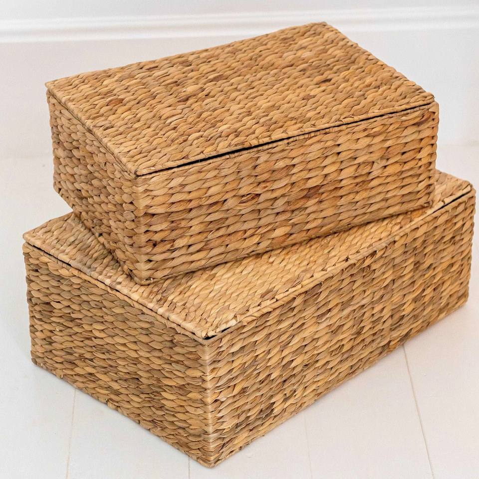 Boîte de rangement en jacinthe d'eau, boîtes pliables, boîtes à couvercle faites à la main, panier de décoration intérieure, organisateur
