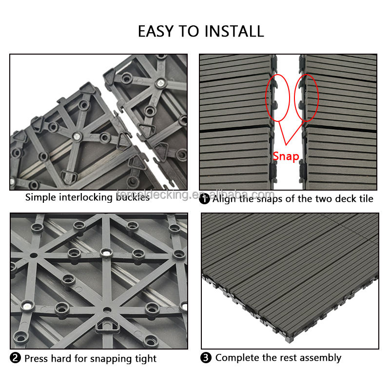 Dalles de terrasse extérieures en composite bois-plastique (WPC) imperméables et emboîtables pour jardin