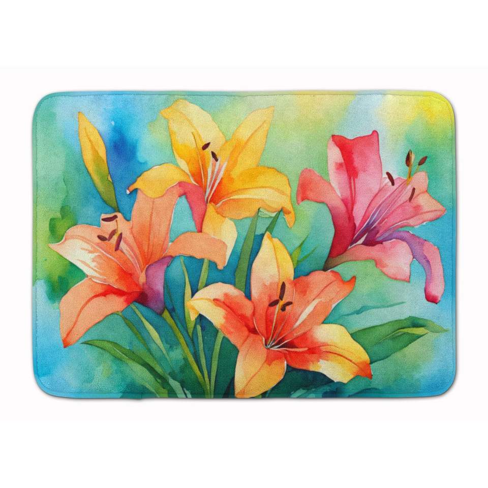 Watercolor Lilies Memory Foam Anti-Fatigue Bath Mat Machine Washable Kitchen Rug or Comfort Cushion for Bath or Kitchen Use