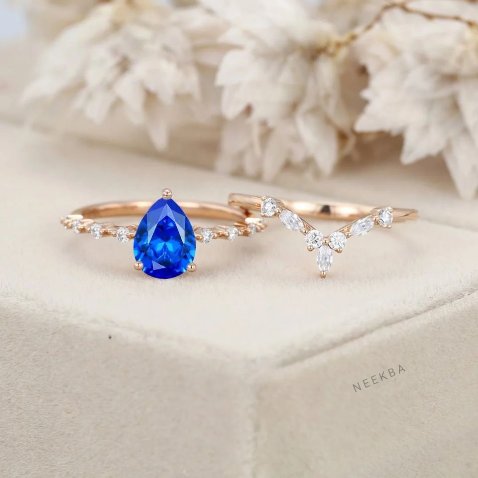 Ensemble de bague de mariage saphir bleuType d'anneaux