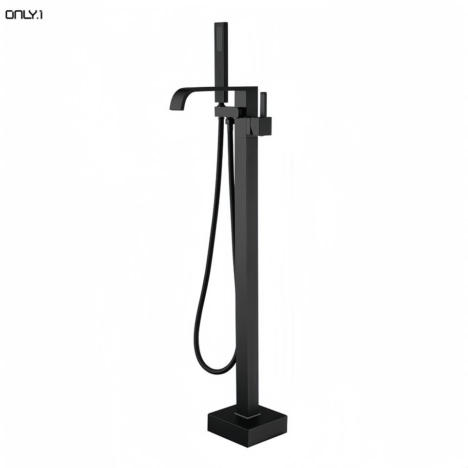 Cascade Chrome robinet de baignoire autoportant carré baignoire au sol baignoire mitigeur robinet douche ensemble avec corps en laiton