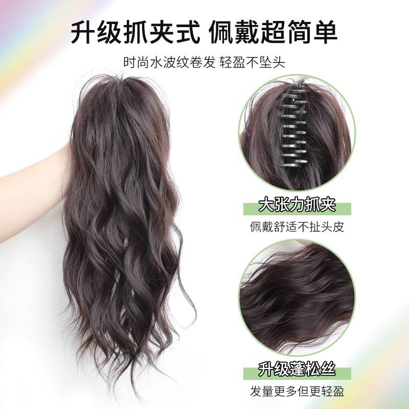 Perruque queue de cheval effet cascade, volume élevé, demi-attachée, cheveux longs bouclés, à clipser, tresse réaliste pour femme