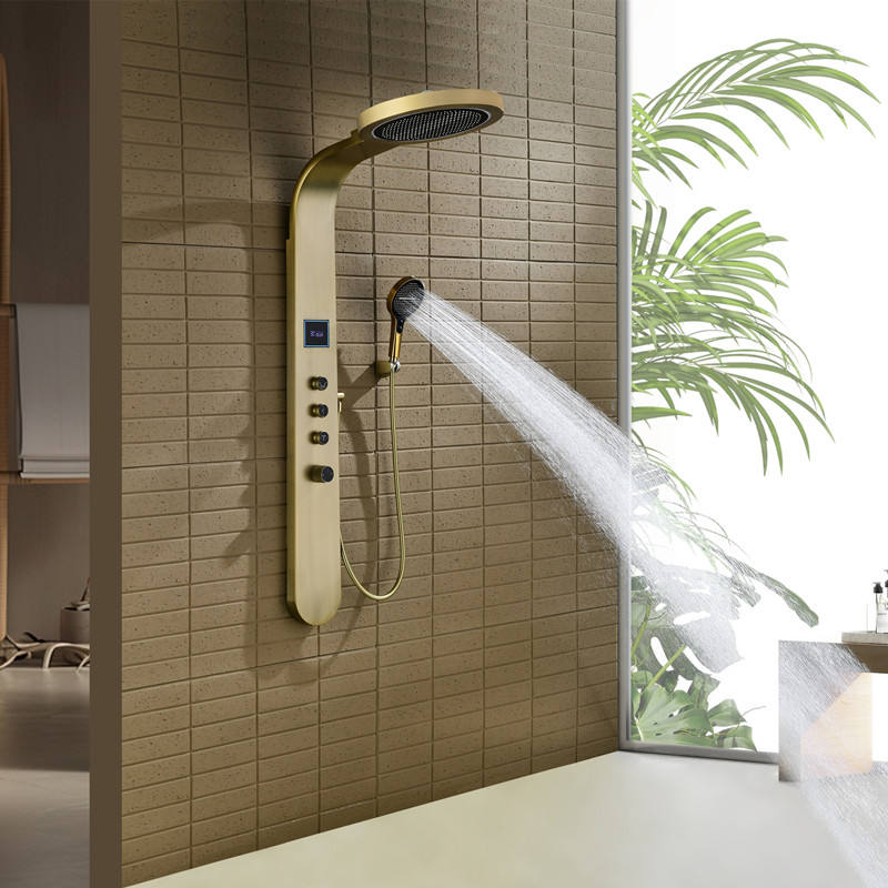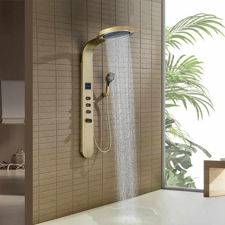 Cascade Round Top Spray En Acier Inoxydable En Laiton Bobine Système De Douche De Pluie Clé De Piano Brossé Or Led Ensemble De Douche