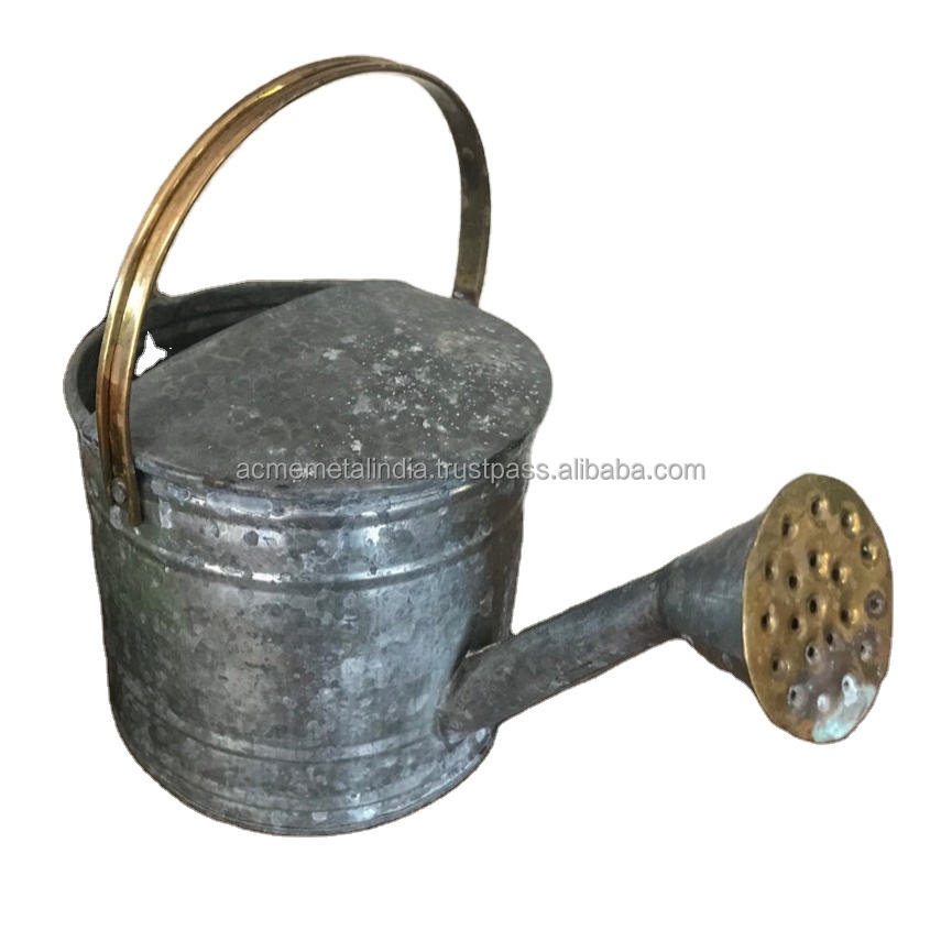 Arrosoir fait à la main galvanisé avec poignée en laiton antique parfait pour la décoration de jardin soin des fleurs outil de jardinage durable élégant