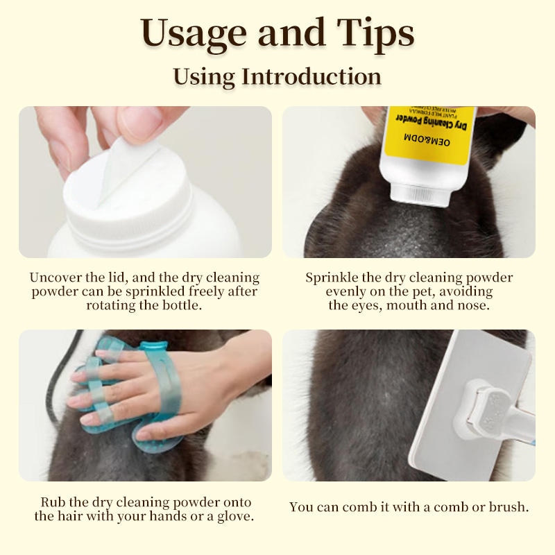 Waterless Plastic Dry Shampoo Powder for Dogs & Cats-No Sulfate/Parabens Corn Starch Fresh Scent No Odor Non-Irritating