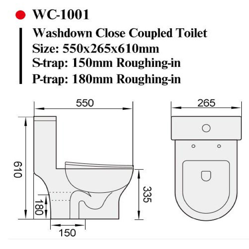 WC compact monobloc Watermark Australia avec bidet intégré pour petite salle de bain, sortie en S 150 mm, sortie en P 180 mm