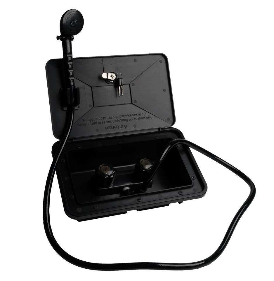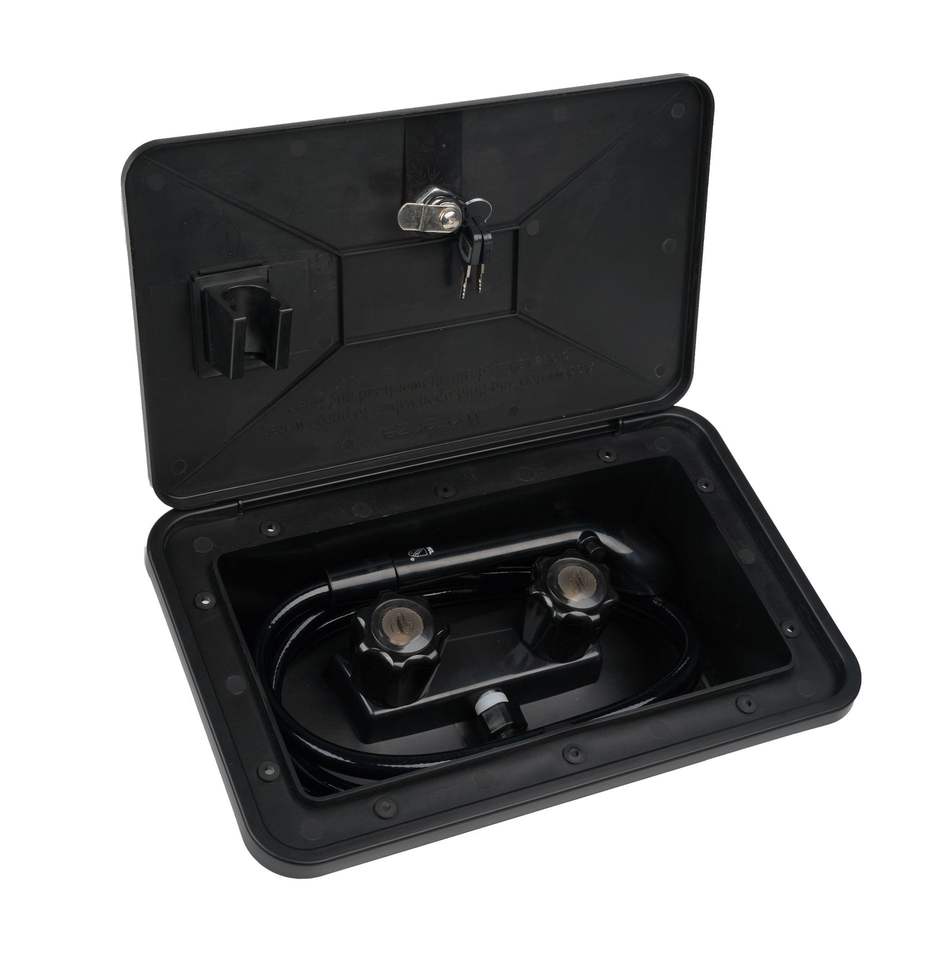 Boîte de douche externe extérieure verrouillable noire en filigrane pour caravane camping-car camping-car RV bateau boîte de douche