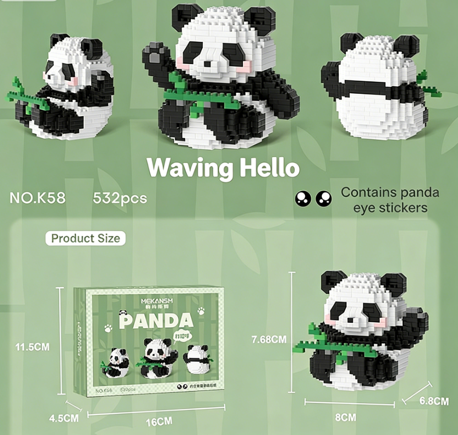 Panda mangeur de pastèque en plastique ABS – Blocs de construction micro – 160 mini-briques – Jouet pour assemblage créatif et présentation mignonne