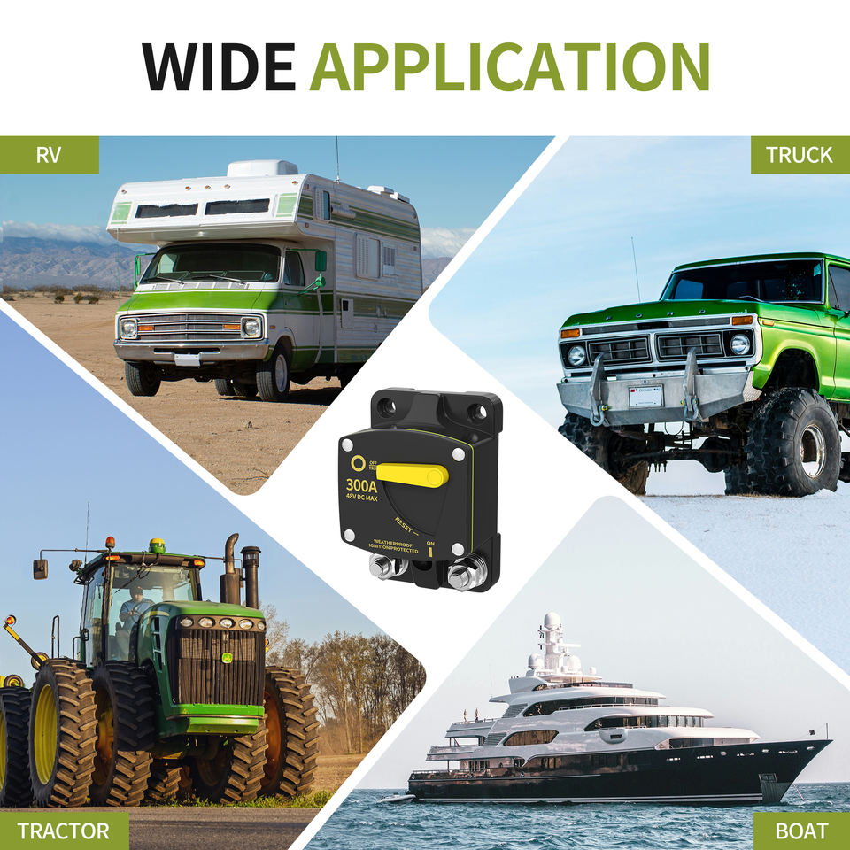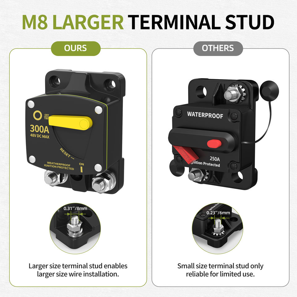 Disjoncteur de batterie de voiture étanche 12V-48V CC M8 avec bouton de réinitialisation manuel 150A 200A 250A 300A