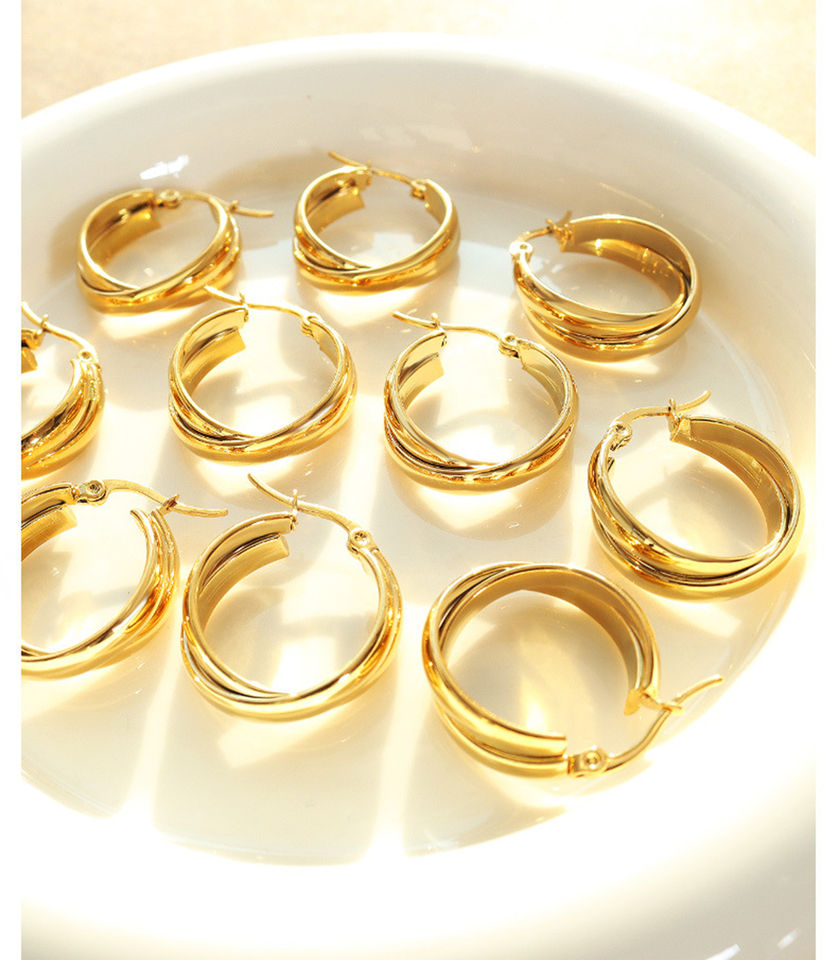 Waterproof 18k Gold Plated Stainless Steel Twist U Hoop Earrings Chunky Hoop Circle Women Earrings