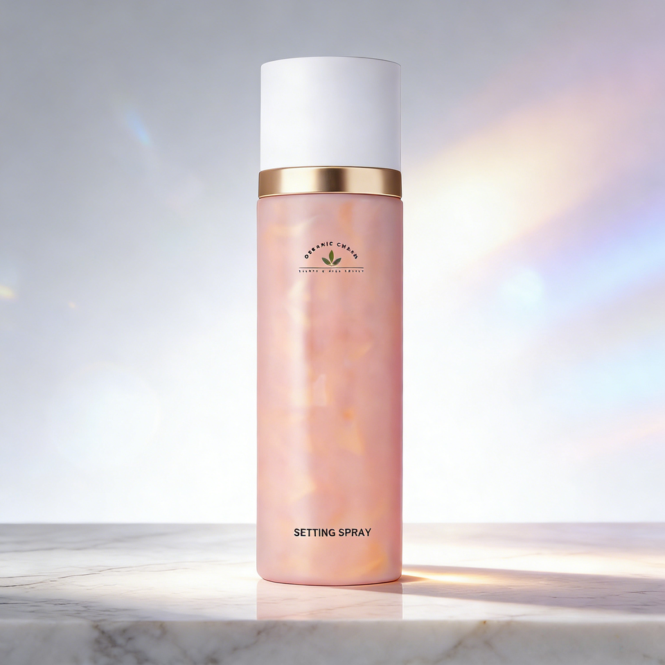 Spray Fixant Matte Iridescent 18H Personnalisé. Résistant à l'eau et transfert, SPF 30, fini satiné pour peau mature