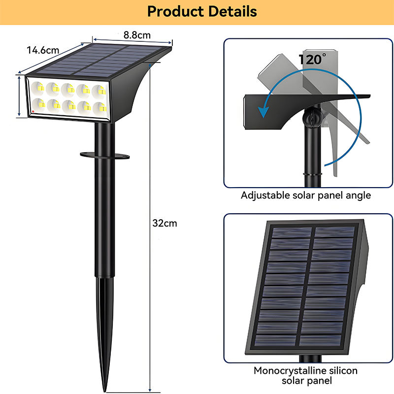 Angle de panneau solaire réglable:Oui, 120 ° angle ajuster