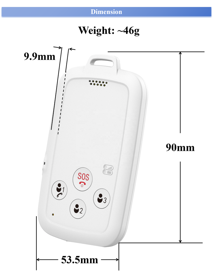 Emplacement GPS, Appel D'urgence SOS, Suivi en temps réel, Geofence d'alarme, Télécommande, Mode D'économie d'énergie, Détection De chute, L'historique de localisation, Suivi de l'activité, Télécommande appFonction