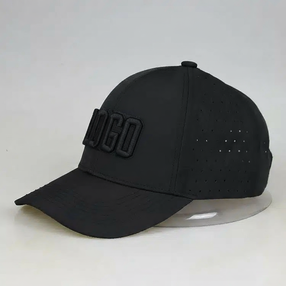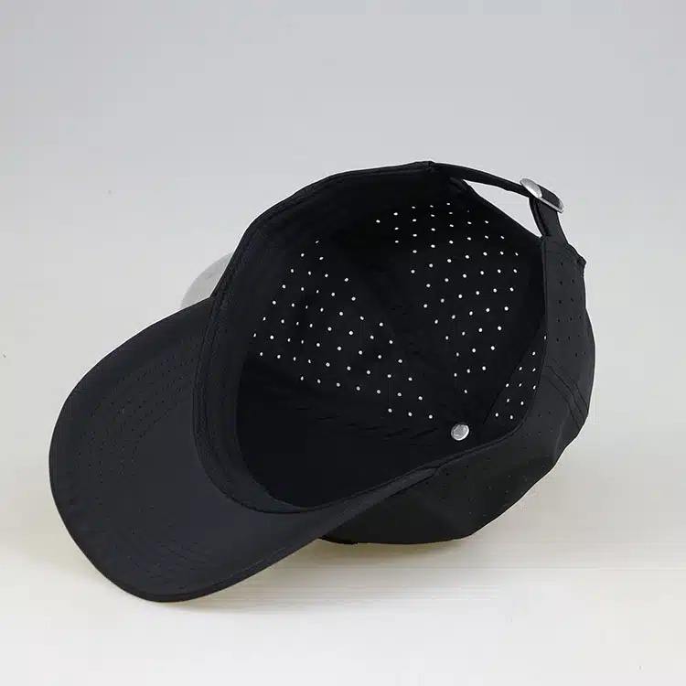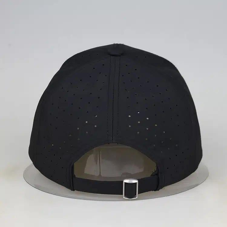 Casquette de golf noire imperméable à 6 panneaux Casquette de baseball perforée Casquette en corde Premium avec logo brodé 3D personnalisé pour hommes