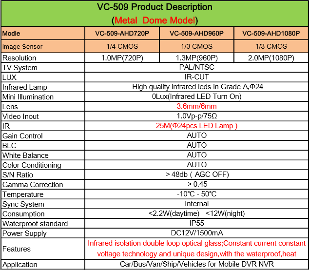 Nom du produit:2mp haute qualité CCTV caméra de voiture