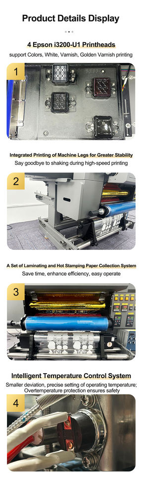 Mots clés:Imprimante d'autocollants de transfert UV DTF avec vernis doré et lamination automatique