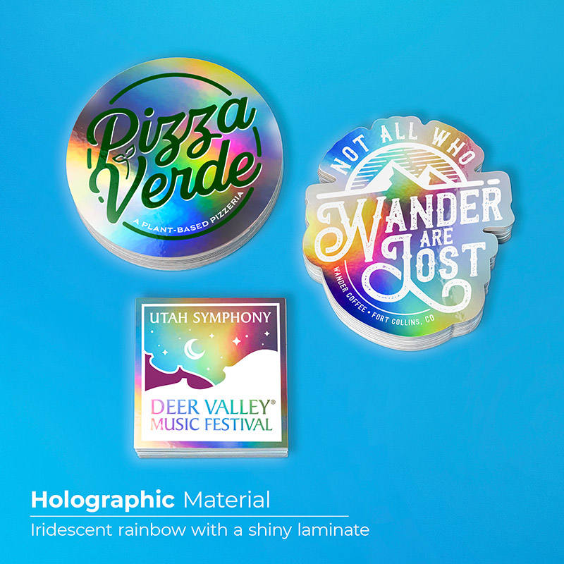 Autocollants personnalisables en vinyle découpé holographique coloré imperméable avec logo personnalisé et dessins animés