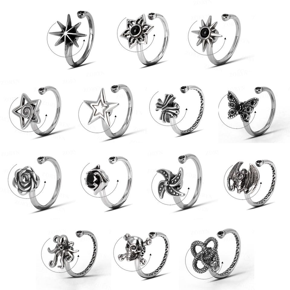 Bagues Fidget Boussole Soleil Ajustables en Acier Inoxydable 316L Étanche, Bijoux Nautiques Vintage avec Pierre Noire pour Hommes et Femmes