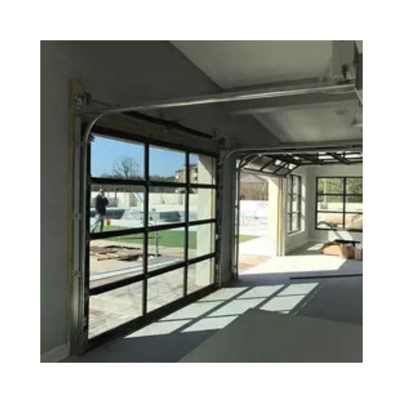 Porte de garage en verre à cadre en aluminium étanche avec porte piétonne, conception de panneau à vue dégagée pour les maisons modernes