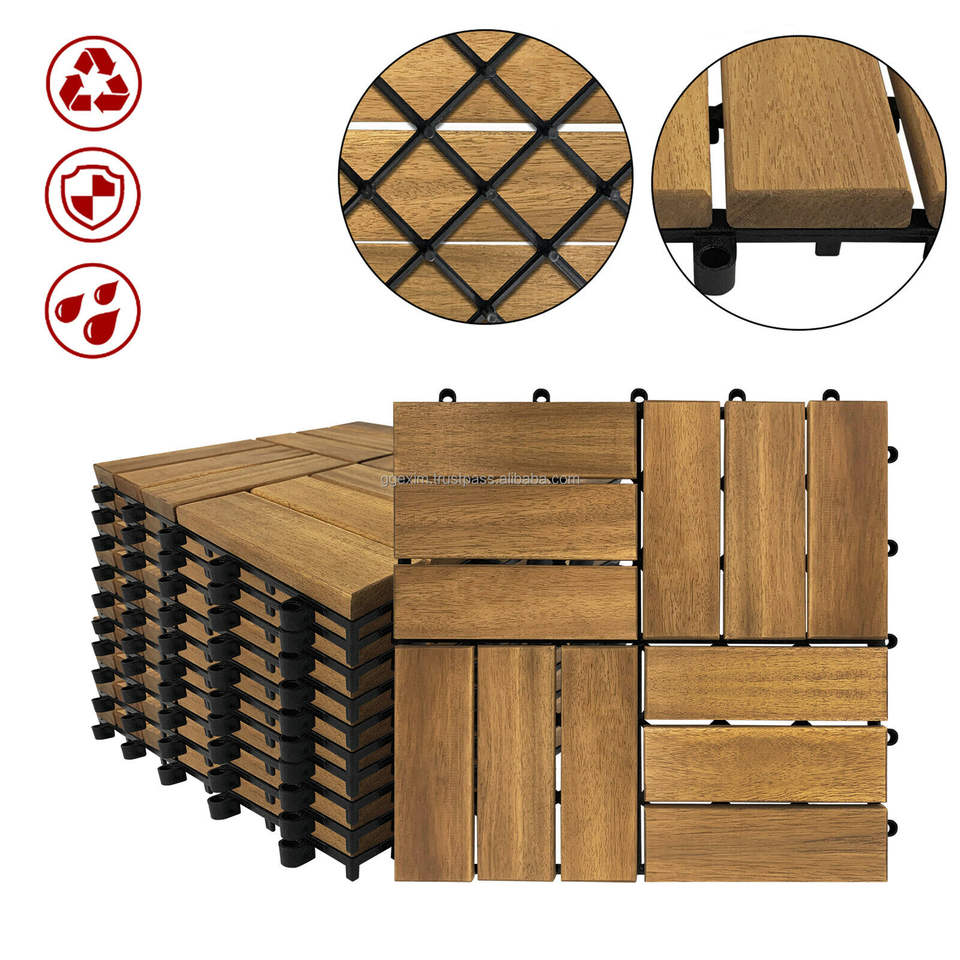 Waterproof Anti-Slip Vietnam Acacia Wood Interlocking Floor Tiles for Indoor Outdoor Use
