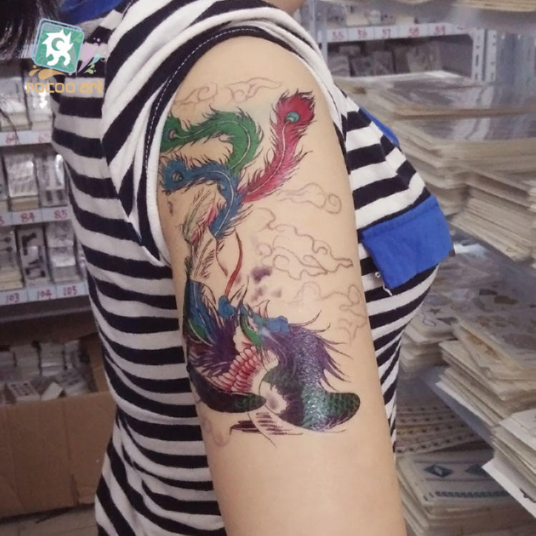 Waterproof Big Arm Shoulder With Peacock Phoenix Dragon Tattoo Designs Temporary Tattoo Sticker