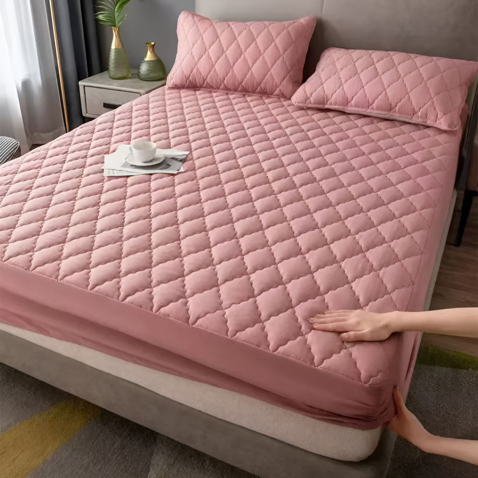 Protège-Matelas Matelassé Épais Imperméable et Respirant Anti-Acariens Anti-Bactérien Housse de Drap de Lit Ajustée Sans Taie d'Oreiller