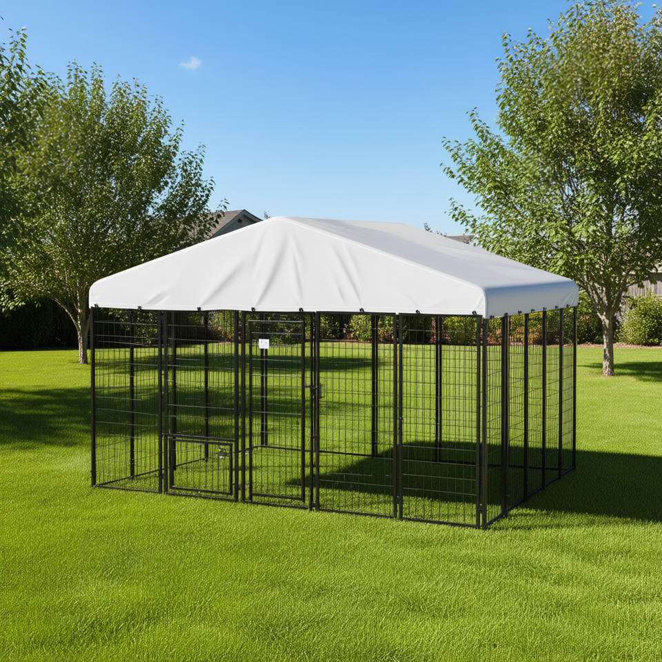 Enclos pour chien d'extérieur 9,8 x 9,8 x 6,8 pieds, en fil de fer soudé, avec couverture imperméable, structure en acier, utilisable toute l'année