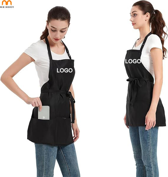 Tabliers imperméables avec logo personnalisé pour femmes avec 3 poches Tabliers lavables en machine pour la cuisine Tablier de chef pour hommes Salon de coiffure Serveur