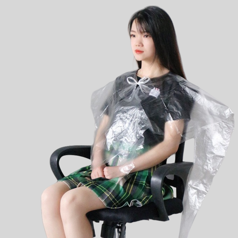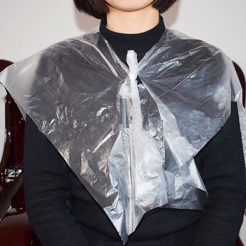 Cape de coiffure jetable imperméable en plastique PE à lacets pour salon de coiffure, teinture et permanente