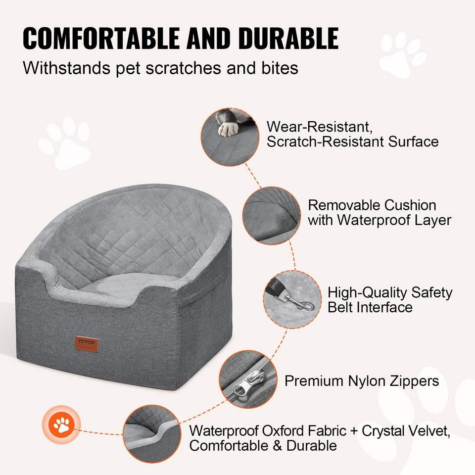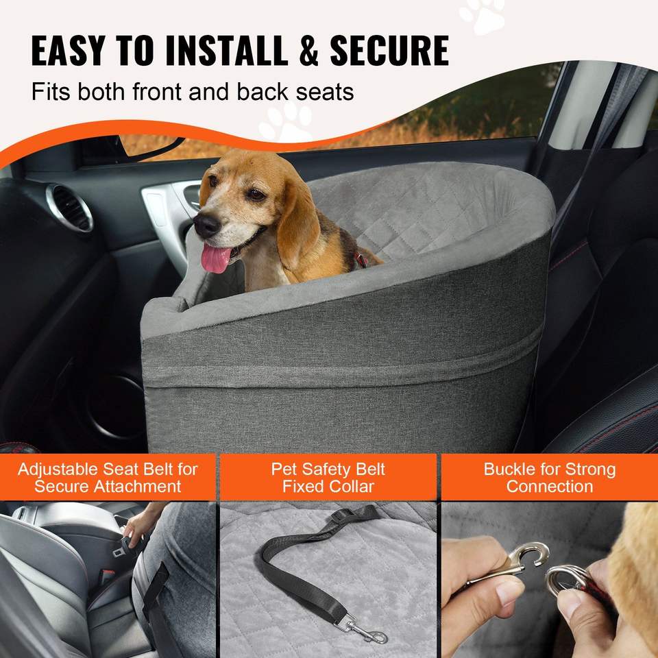 Siège auto imperméable pour chien avec poche de rangement, laisse de sécurité à clipser, lit rembourré en éponge, housse de siège arrière pour animaux de compagnie