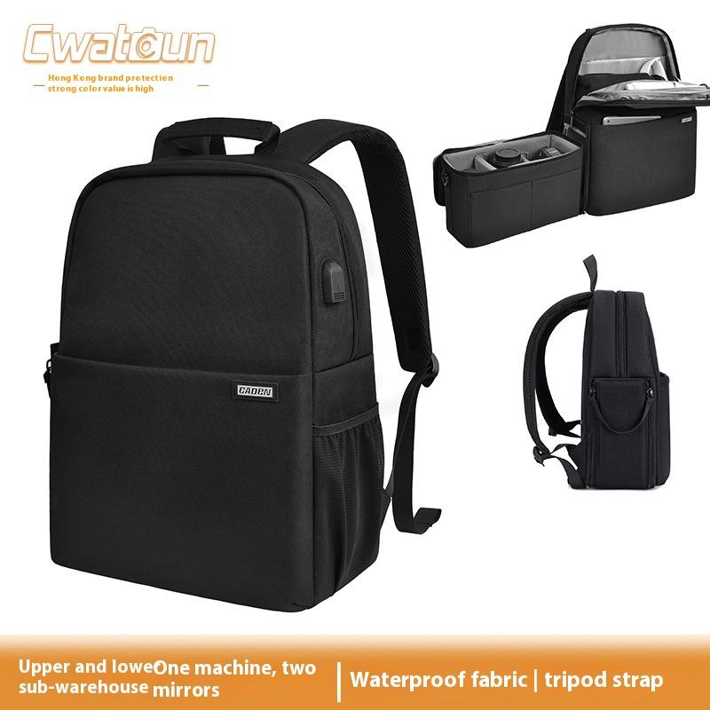 Sac à dos pour appareil photo à double épaule imperméable, photographie reflex numérique, matériau en nylon décontracté, support de trépied, sac à dos pour appareil photo à double couche