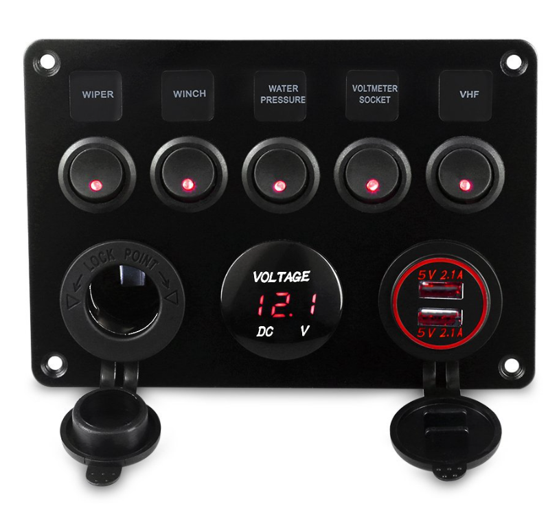 Étanche double port USB voltmètre numérique 12V sortie combinaison 5 Gang Marine LED bateau interrupteur panneau voiture interrupteur panneau