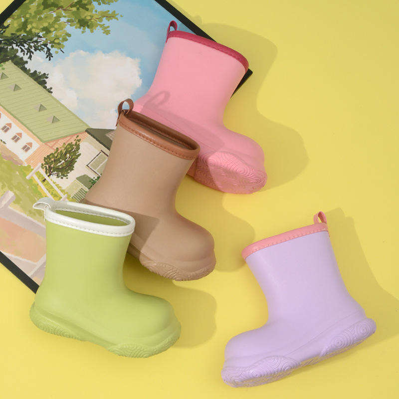 Bottes de pluie d'hiver légères EVA imperméables pour garçons filles bébé doublées de polaire antidérapantes bout rond conception courte
