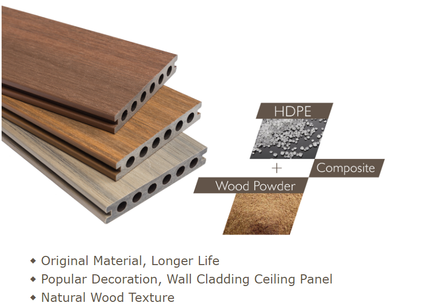 Matière première:Environ 35% PE , 55% fibre de bois et 10% additif