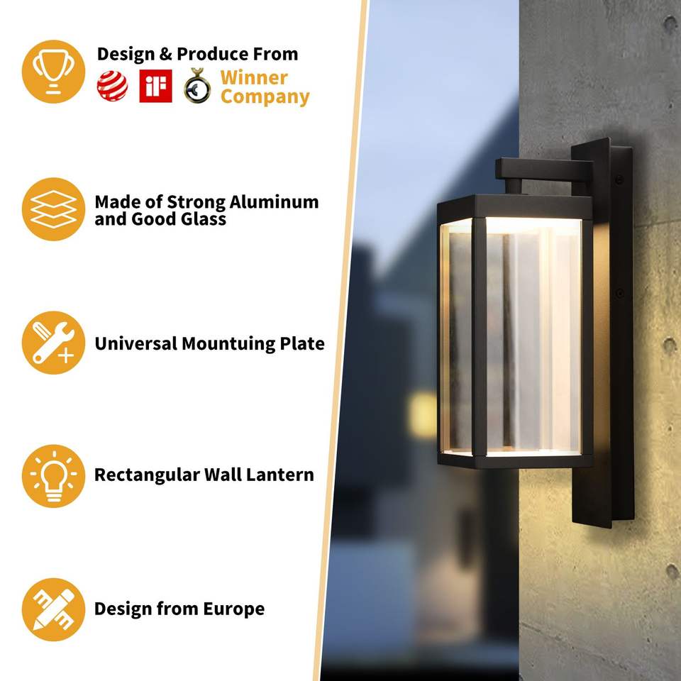 Applique murale extérieure étanche avec LED intégrée et abat-jour en verre transparent 22527 – Lanterne murale d'extérieur