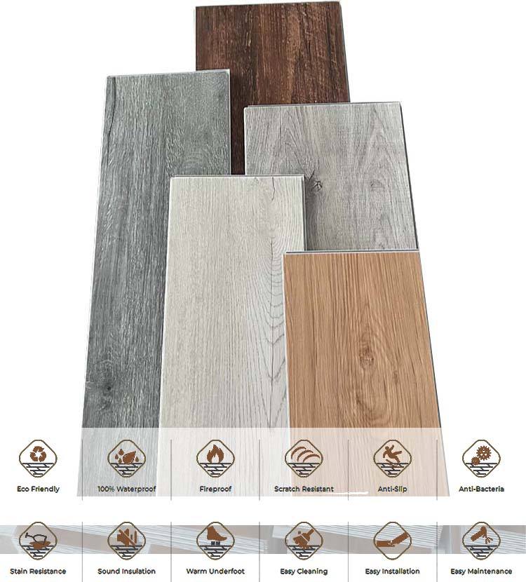 Plancher en vinyle texturé bois imperméable et ignifuge, carrelage de sol, plancher SPC à clic, plancher SPC imperméable