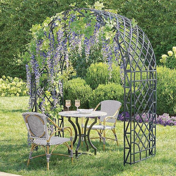 Tonnelle de jardin étanche avec auvent rétractable, élégante arche en fer forgé pour entrées de jardin