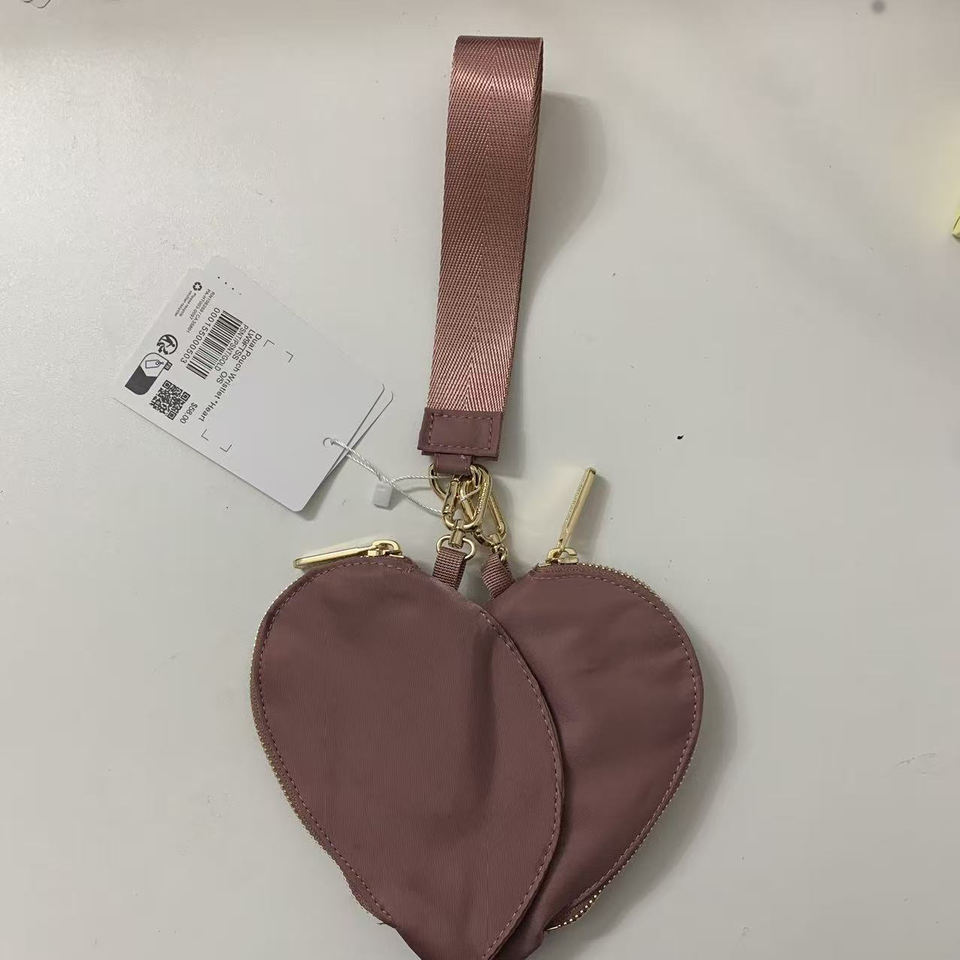 Porte-clés étanche en forme de cœur avec double poche, mini pochette de poignet, accès facile, portefeuille minimaliste léger pour le transport quotidien en déplacement