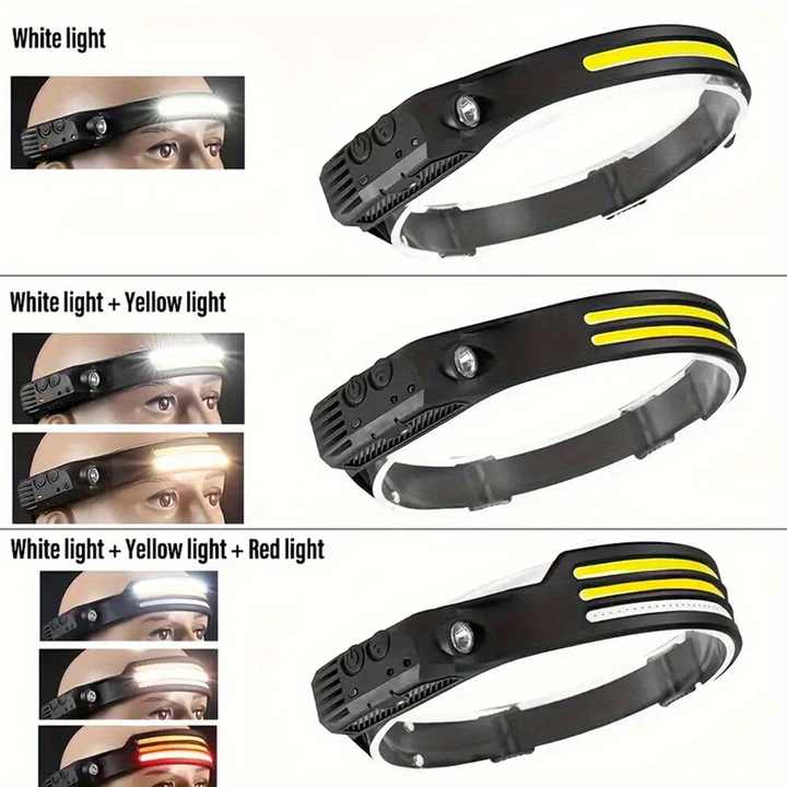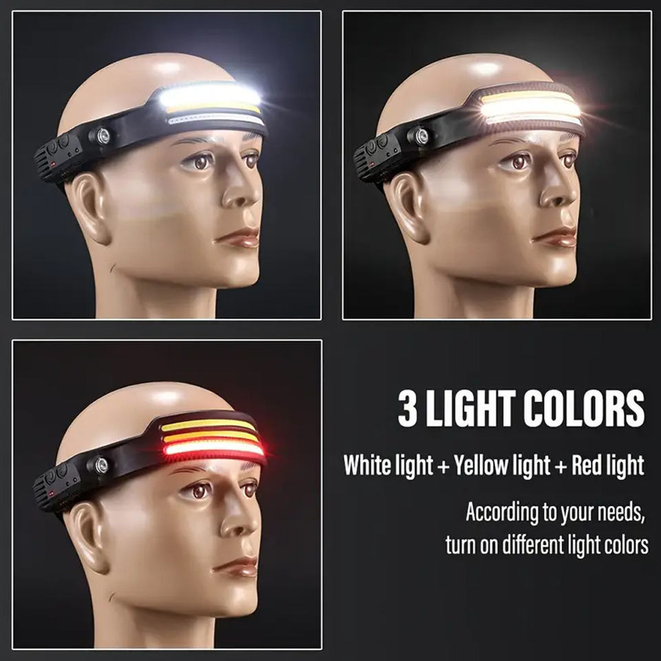 Lampe frontale LED COB rechargeable haute puissance, étanche, pour le camping en extérieur, avec capteur, lumineuse, lampe torche