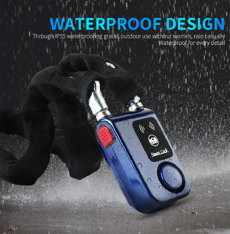 Serrure intelligente pour scooter électrique et vélo, étanche IP55, alarme 110 dB, antivol, application mobile, cadenas à distance, chaîne en acier de 80 cm, AAA