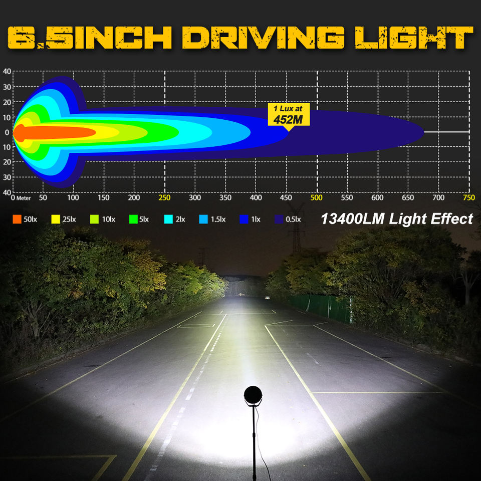 Projecteurs Stedi de Conduite Tout-Terrain 4x4 Étanche IP68 à Haute Puissance, 12V 24V, Rond 6.5 Pouces, Faisceau Combiné pour Camion SUV