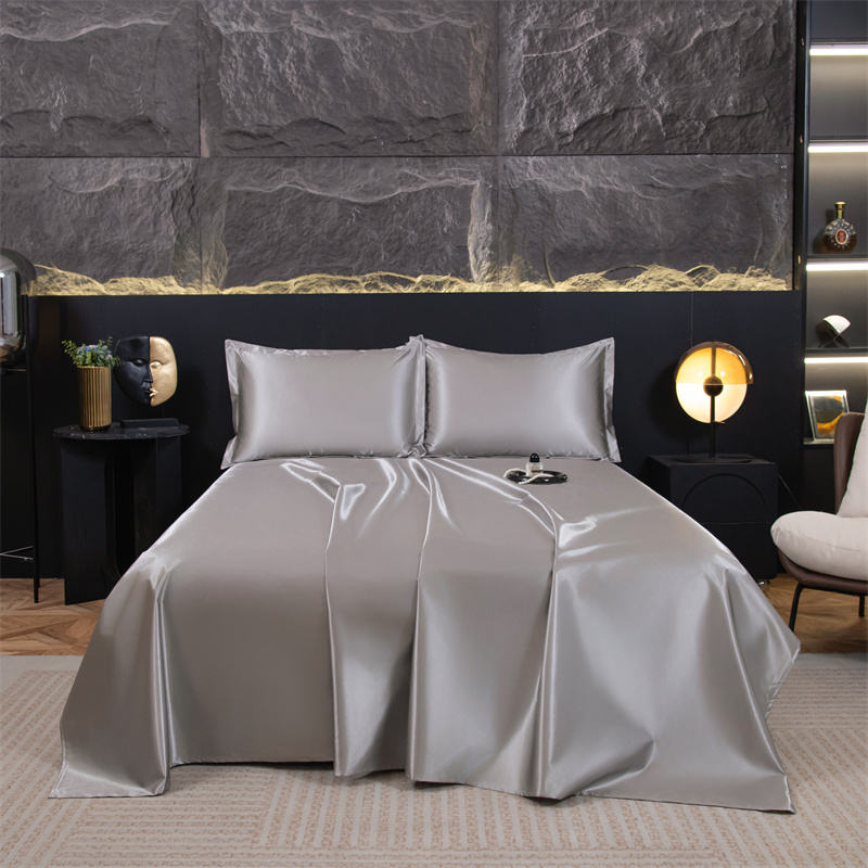 Drap double imperméable en soie glacée, frais et souple dans des couleurs unies pour toutes les saisons-Housse de couette Super King Size pour lits de dortoir