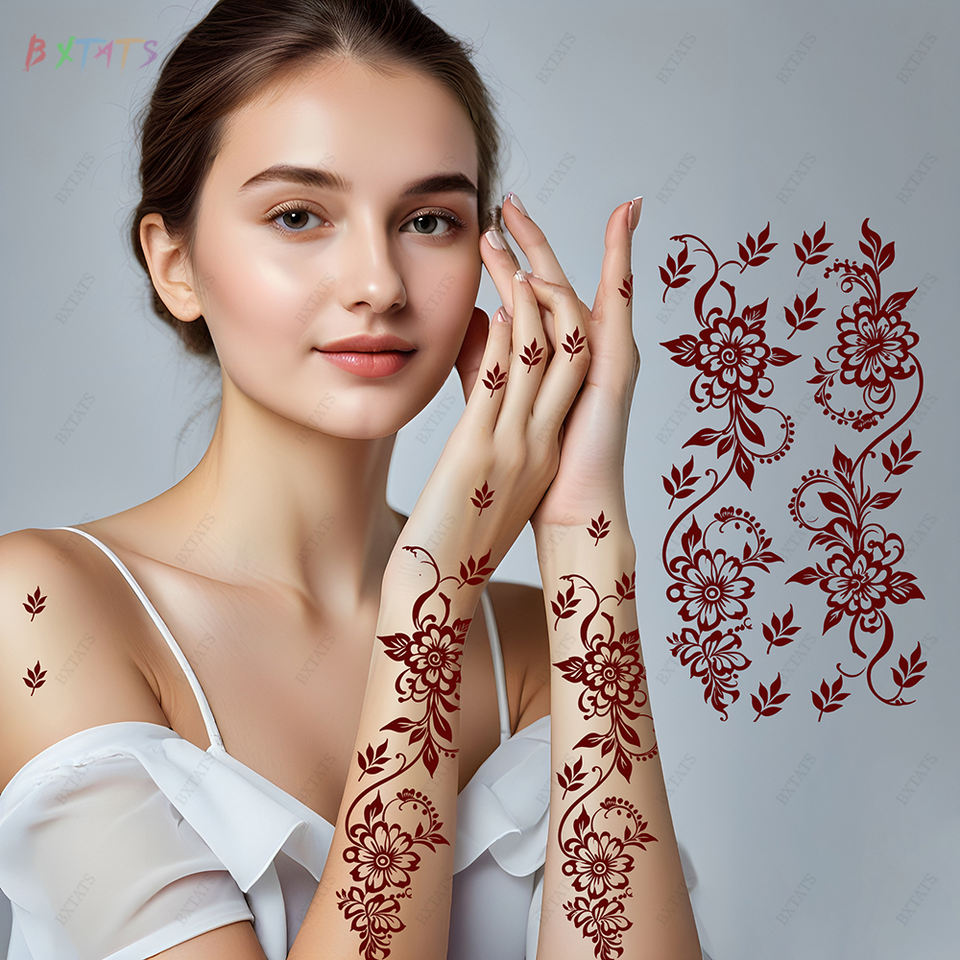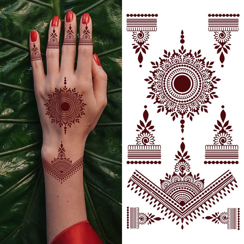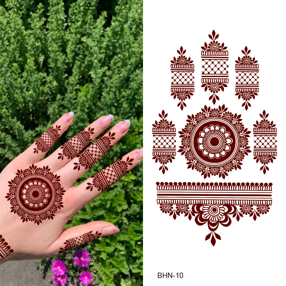 Faux autocollant de tatouage au henné imperméable de style Mandala Mehndi indien en blanc marron pour les fêtes de mariage