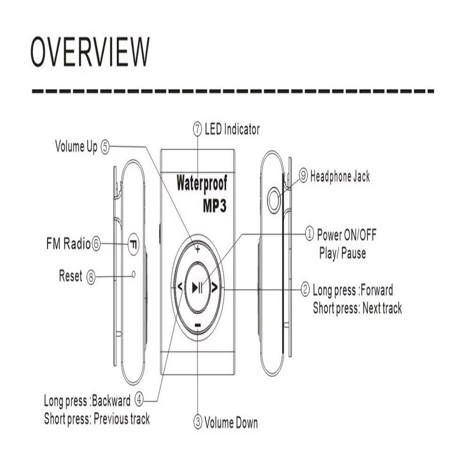 Lecteur MP3 sportif étanche IPX8 avec stockage intégré de 4 Go ou 8 Go, radio FM, adapté au sport