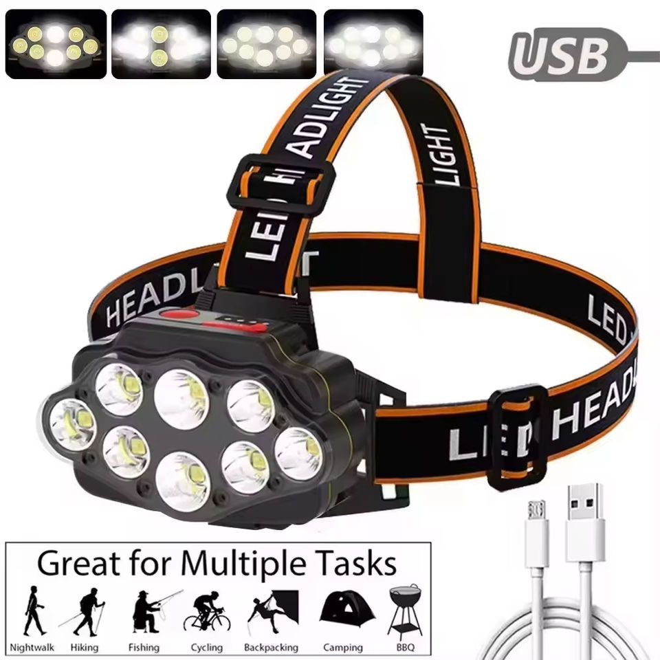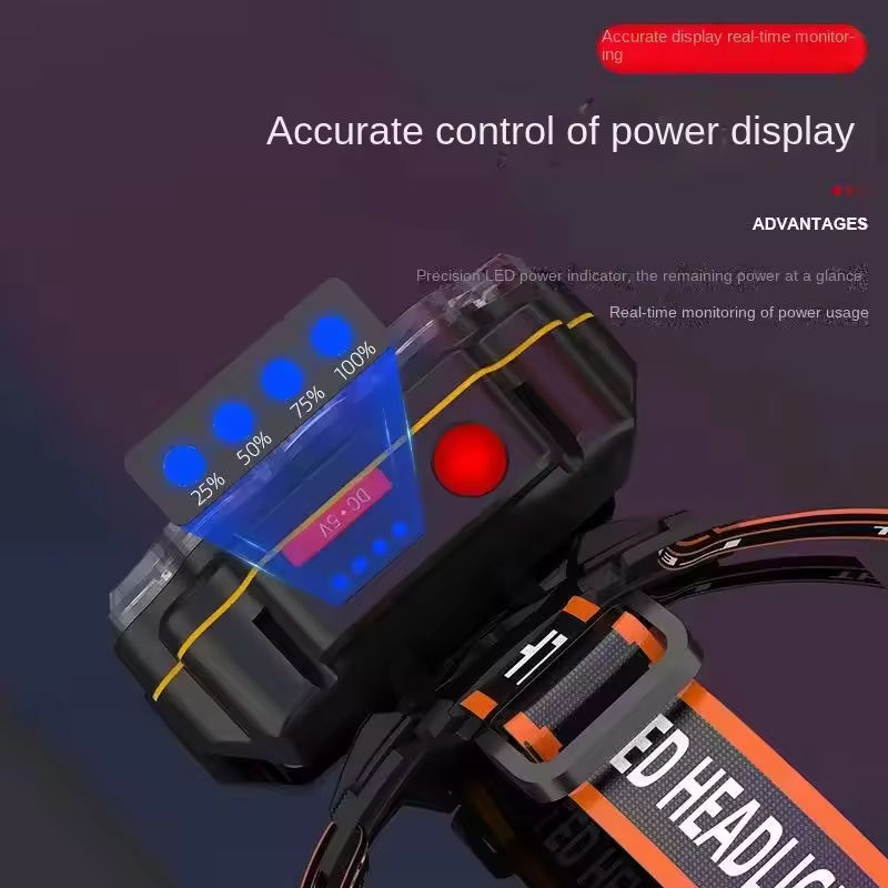 Lampes frontales LED portables étanches IP65 avec batterie rechargeable, technologie COB pour le camping, la pêche, le travail et l'éclairage extérieur