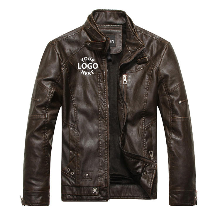 Waterproof Men Bomber Jacket Custom Embroidery PU Leather Motorcycle Jacket Zipper