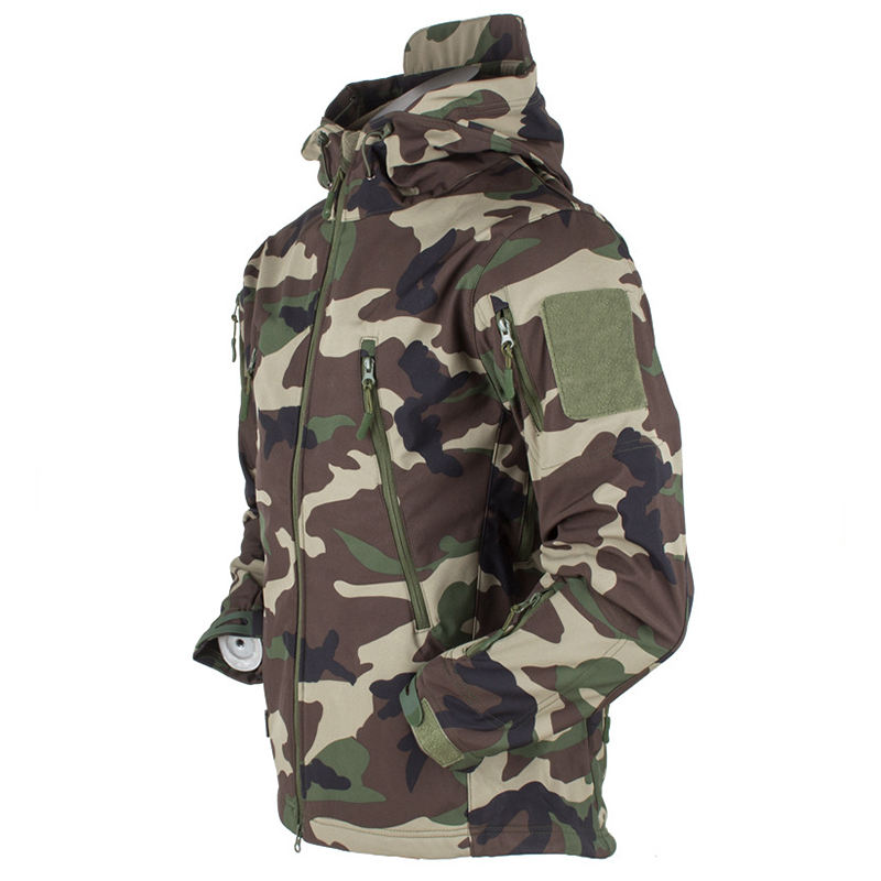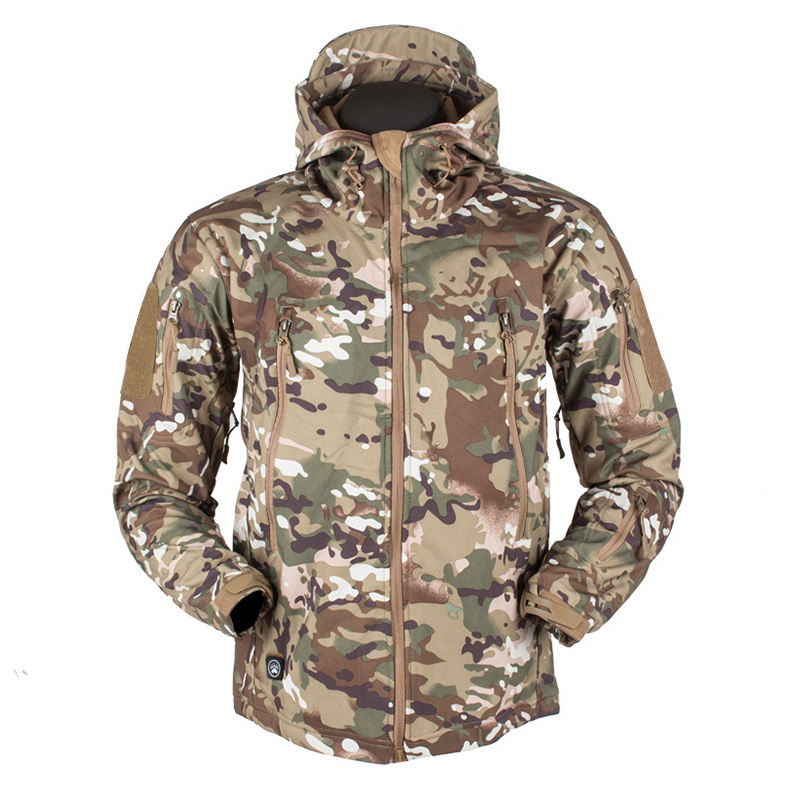 Waterproof Outdoor Windbreaker Men Camping Hiking Hooded Jacket Camouflage Zipper Bag 100% Polyester Digital Print