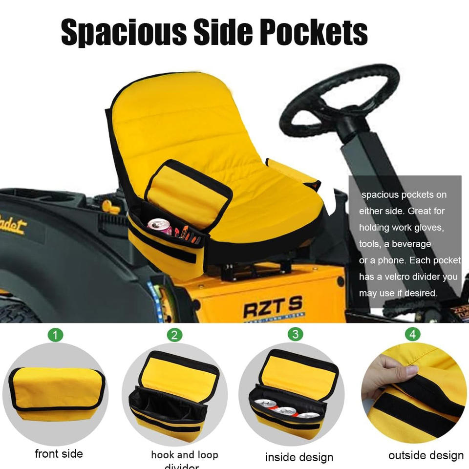 Waterproof Oxford Material Riding Lawn Mower Tractor Seat Cover with Side Drink Holder Seat Cushion
