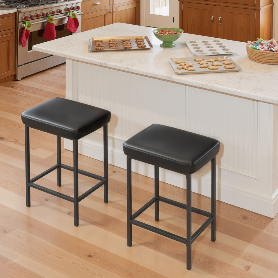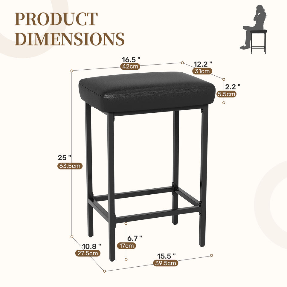 Banc de bar moderne en cuir PU imperméable, hauteur fixe, éponge 28D, cadre en fer, facile à nettoyer, banc de bar commercial, banc de gym à domicile